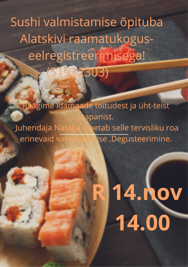 Sushi valmistamise õpituba Alatskivi raamatukogus